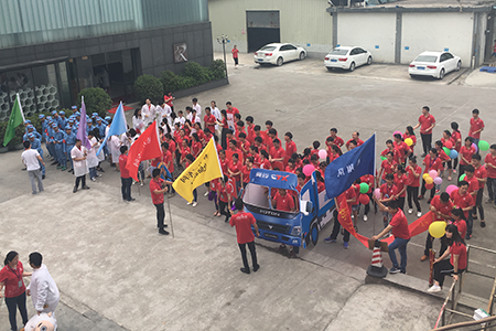 緊接著,一大幫來自“棟方二車間、倉儲聯(lián)隊”的老司機(jī)們,駕駛著“棟方奧鈴號運(yùn)輸車”穩(wěn)穩(wěn)向前,喊出他們“追求卓越,不斷創(chuàng)新”的決心。