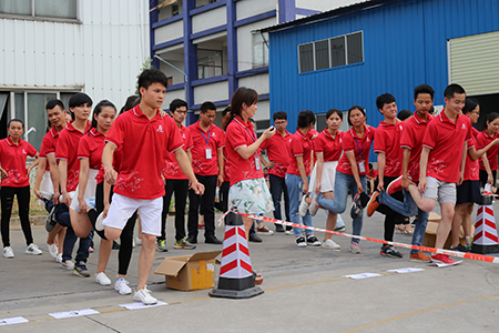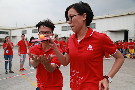 第二輪:協(xié)作接力賽,分鏈接加速、袋鼠跳、平衡乒乓球過障礙和無敵風(fēng)火輪4個接力小環(huán)節(jié)。一聲令下,參賽員工魚貫而出。場上,你追我趕、奮力拼搏;場下,加油聲、吶喊聲此起彼伏。這項活動不只讓員工們的身心得到放松,還令他們的團(tuán)隊協(xié)作力、集體榮譽(yù)感得到前所未有的提高。