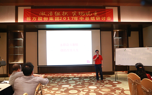 2017年7月30日至31日,“激活組織、實(shí)現(xiàn)蛻變、重寫(xiě)未來(lái)——棟方股份集團(tuán)2017年中總結(jié)研討會(huì)”在廣州白水寨嘉華溫泉酒店順利召開(kāi)。棟方股份集團(tuán)董事長(zhǎng)唐新明先生、集團(tuán)產(chǎn)業(yè)鏈投資管理公司總經(jīng)理方珉先生、公司高層領(lǐng)導(dǎo)、各子公司領(lǐng)導(dǎo),以及公司中層管理人員悉數(shù)出席會(huì)議。上午9時(shí)會(huì)議正式開(kāi)始,本次研討會(huì)由人事行政中心副總監(jiān)周金桃主持,棟方股份集團(tuán)董事長(zhǎng)唐新明先生作開(kāi)場(chǎng)致辭。