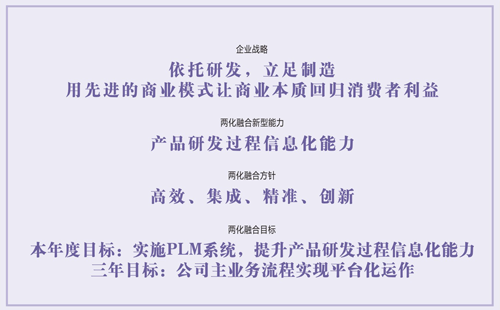 在信息化條件下,兩化融合是企業(yè)獲得可持續(xù)競爭優(yōu)勢(shì)的必由之路,是提高企業(yè)經(jīng)濟(jì)效益的有效手段,關(guān)系到企業(yè)的研發(fā)設(shè)計(jì)高效管控能力、生產(chǎn)過程管控能力以及品牌服務(wù)全生命周期管控能力,涉及到企業(yè)管理和運(yùn)營的方方面面。