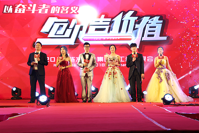 棟方股份集團倪總、邱副總分別登臺作工作匯報,帶領(lǐng)大家回顧了2017年公司的蛻變、發(fā)展之路,并向全體家人送上了新春祝福。