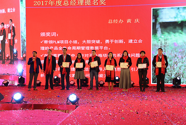 正如唐董所言,2017是不平凡的一年!過去的一年,公司除成功達成重大項目之外,還涌現(xiàn)了大批優(yōu)秀的團隊、個人。為感謝他們在各自崗位上付諸的努力,公司依次頒發(fā)了優(yōu)秀項目獎、優(yōu)秀團隊獎、明日之星獎、棟方風(fēng)范獎、總經(jīng)理提名獎、十年忠誠獎等十三個獎項,共計4大項目、5個團隊與137名個人在此次年會上受到表彰。