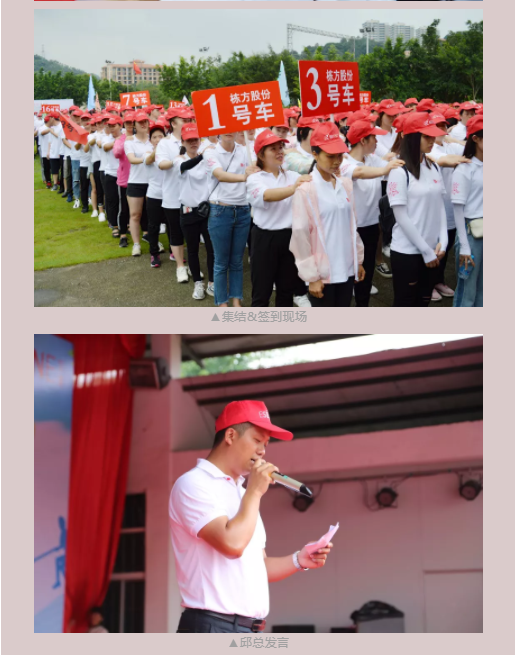 抵達(dá)目的地后,看到的是佇立在綠油油草地上的簽到墻,還有等候多時(shí)的基地教導(dǎo)員;在教導(dǎo)員的帶領(lǐng)下整齊列隊(duì)簽到,進(jìn)入訓(xùn)練場(chǎng)地,邱總上臺(tái)發(fā)言。