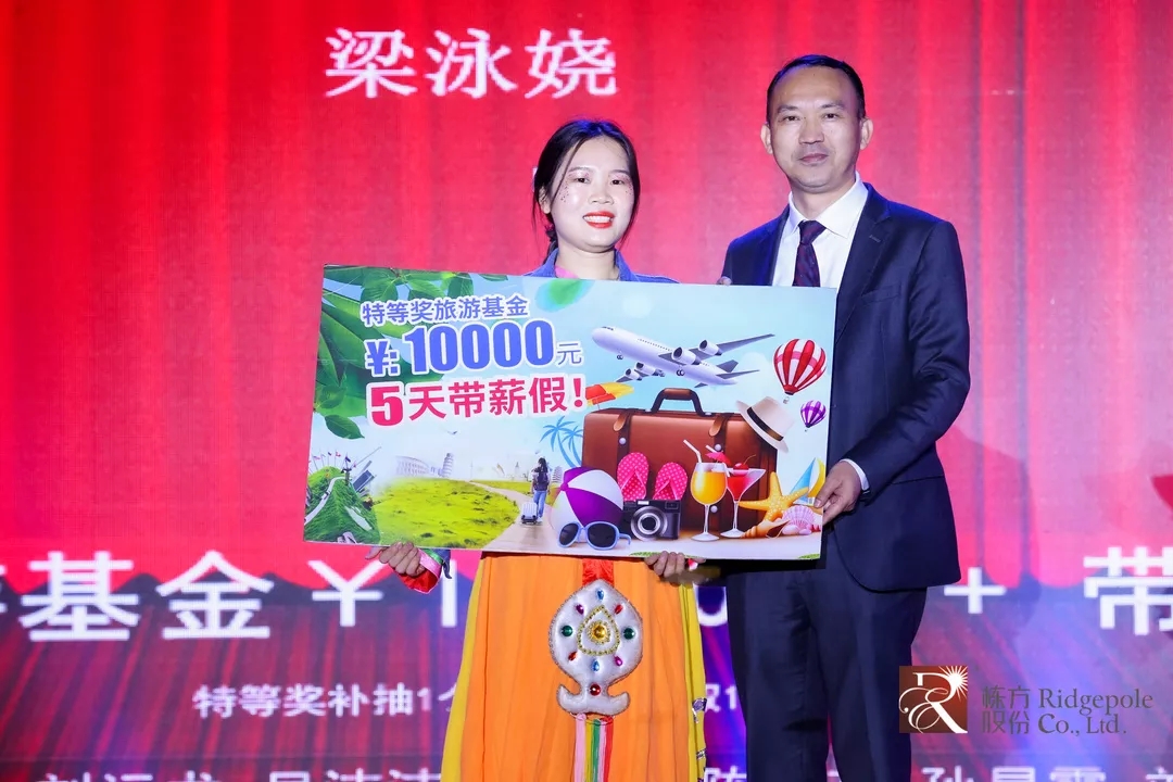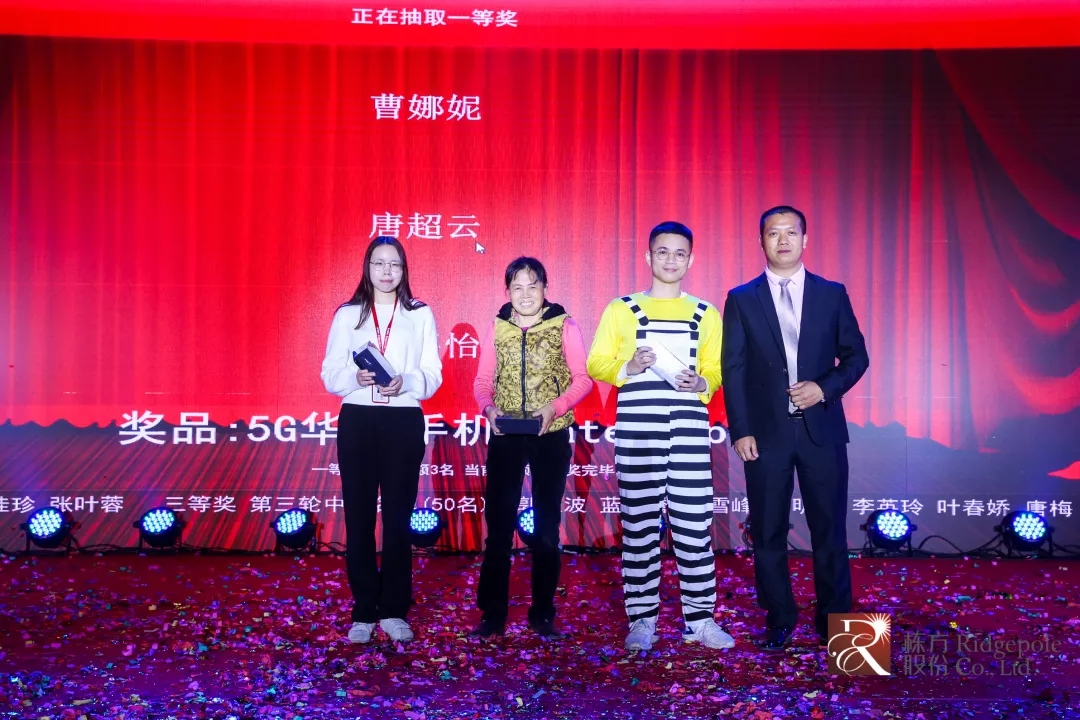 今年,公司為員工精心準備的獎品除現(xiàn)金紅包、紀念金鈔外,還有華為手機以及萬元家庭游豪華大獎。