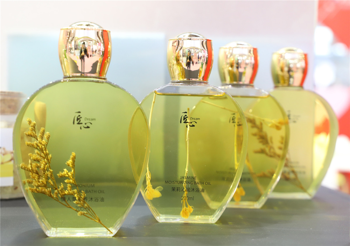 創(chuàng)意升級(jí),科技加碼,棟方股份館內(nèi)陳列眾多創(chuàng)意星品。輕醫(yī)美、植物有機(jī)、精油、花瓣添加、彩妝、香水等全部美妝品類(lèi)產(chǎn)品展現(xiàn)眼前,向每一位駐足參觀(guān)的客戶(hù),展示著棟方股份技術(shù)與藝術(shù)完美結(jié)合的創(chuàng)新成果。
