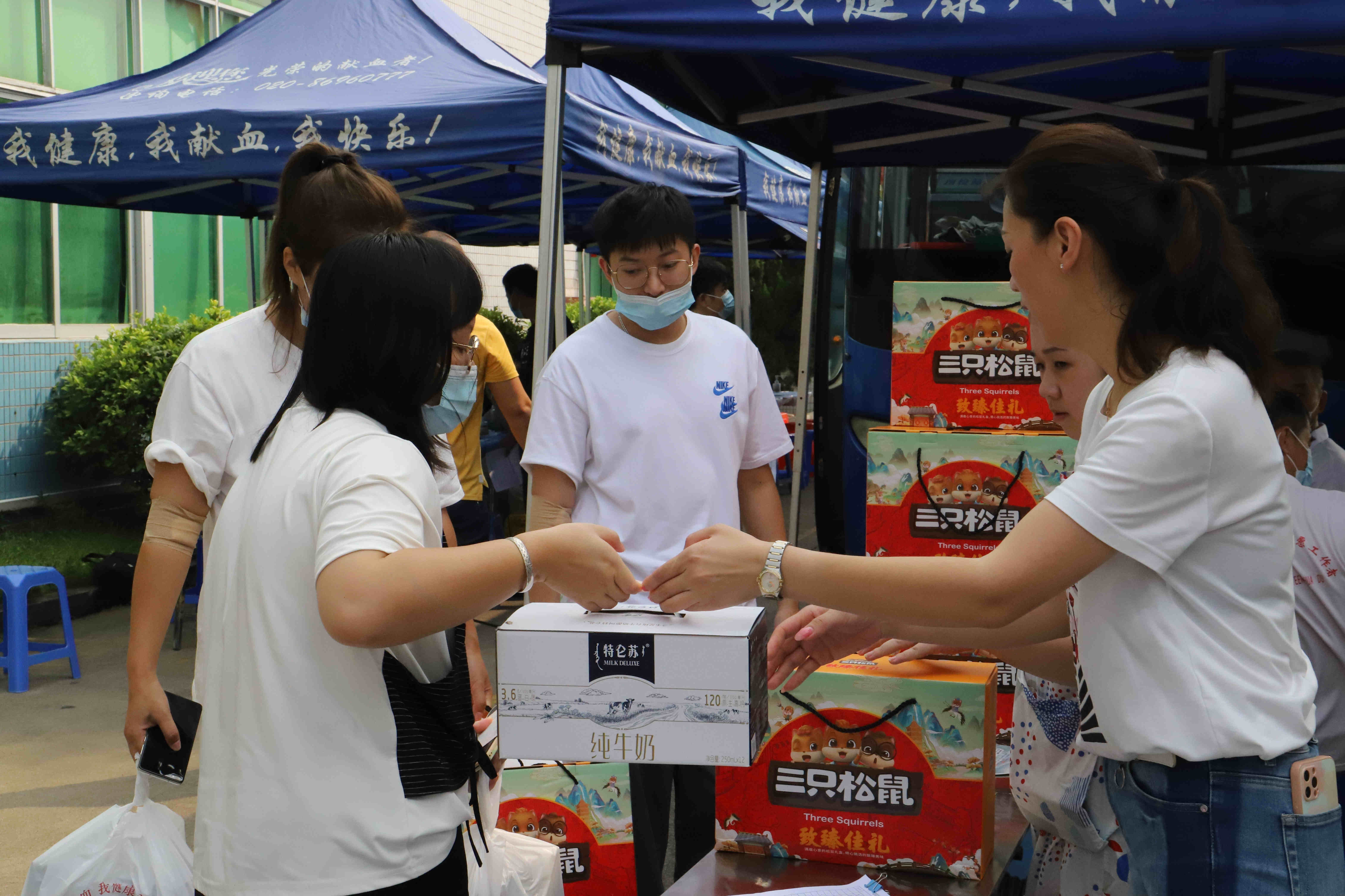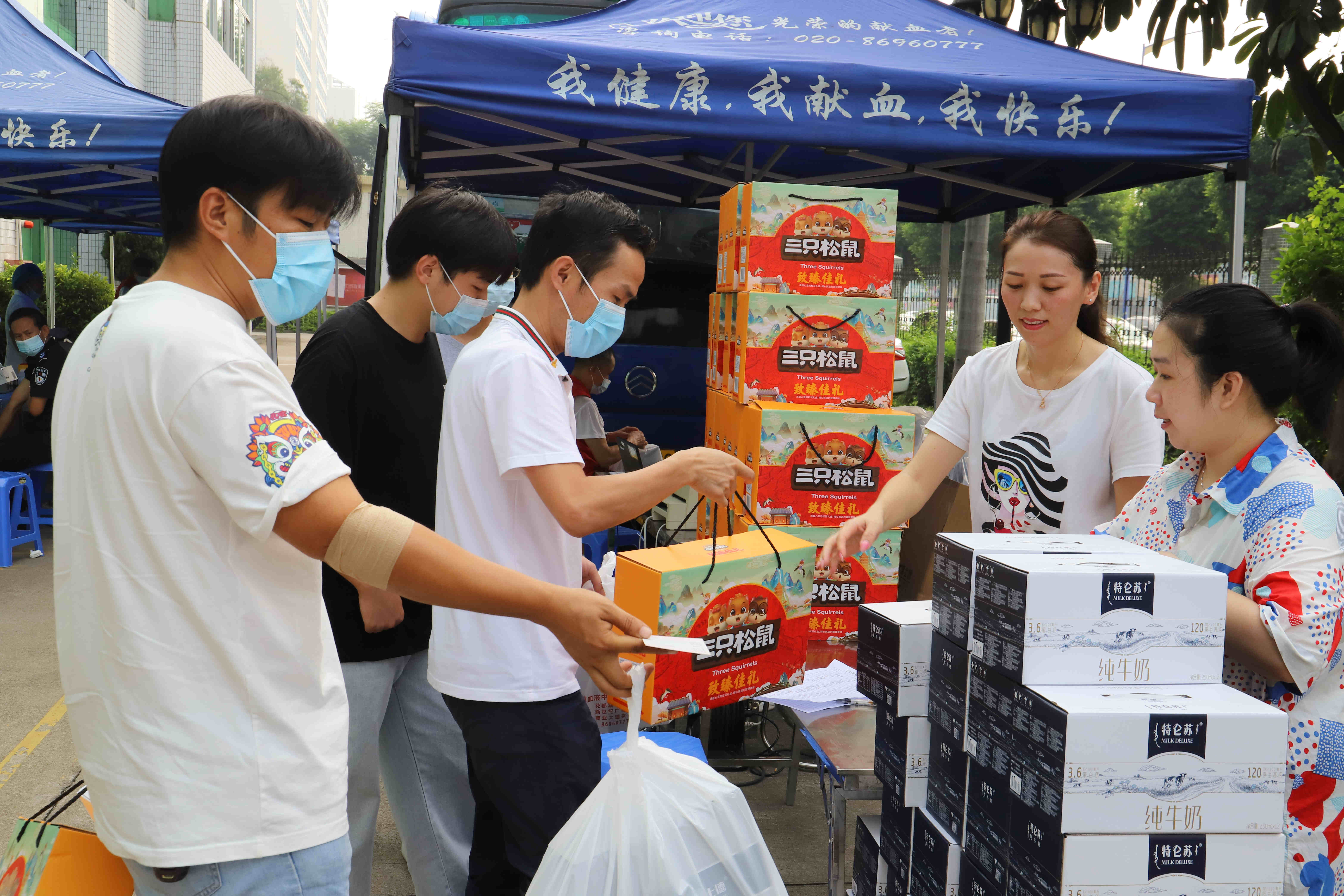 ▲工作人員為獻(xiàn)血者提供營(yíng)養(yǎng)食品